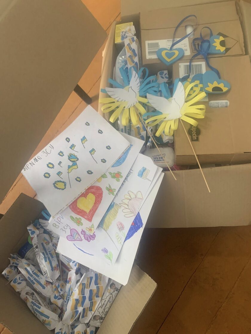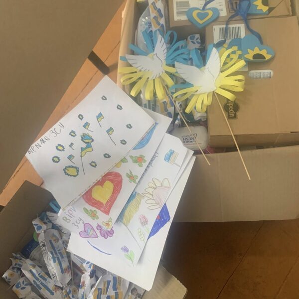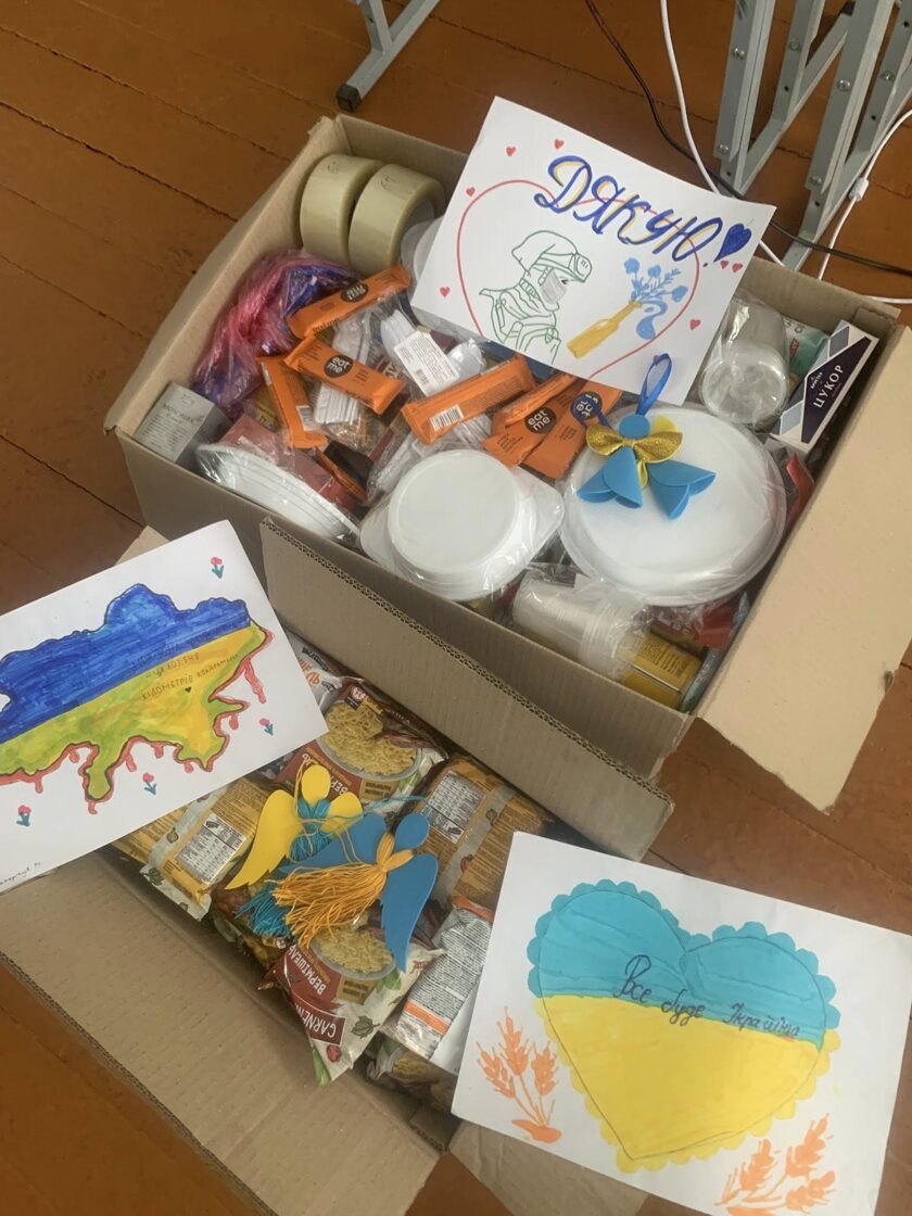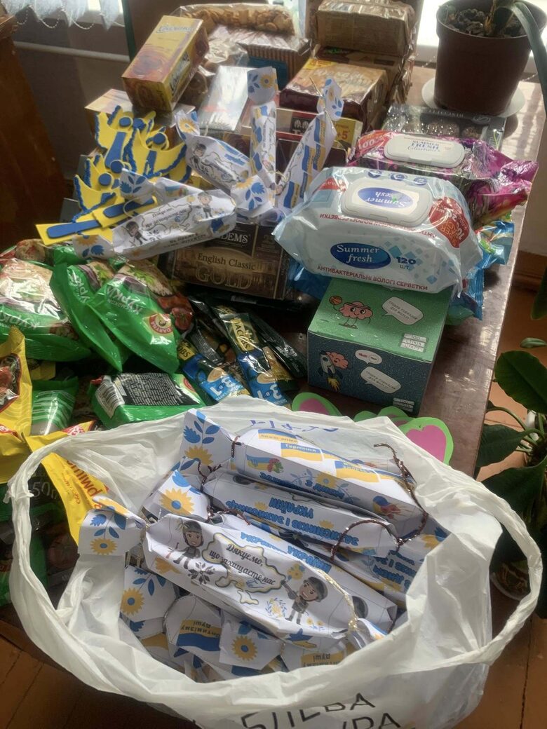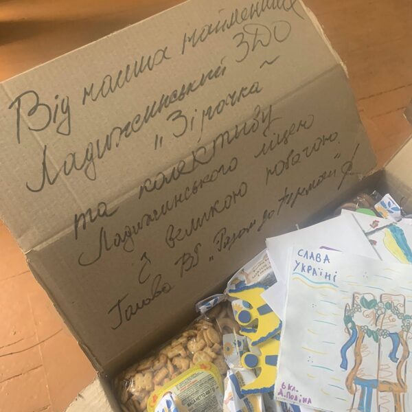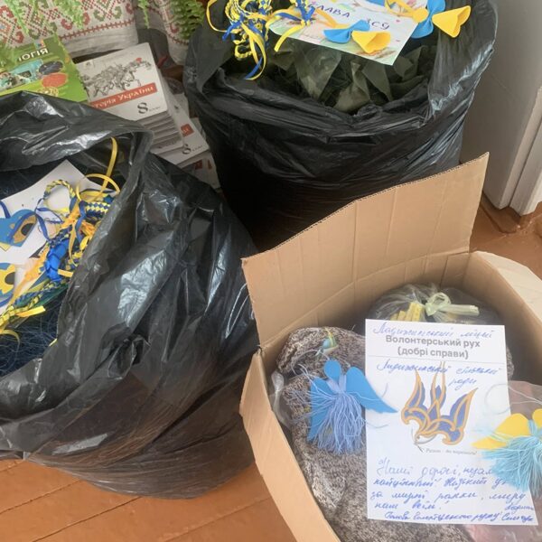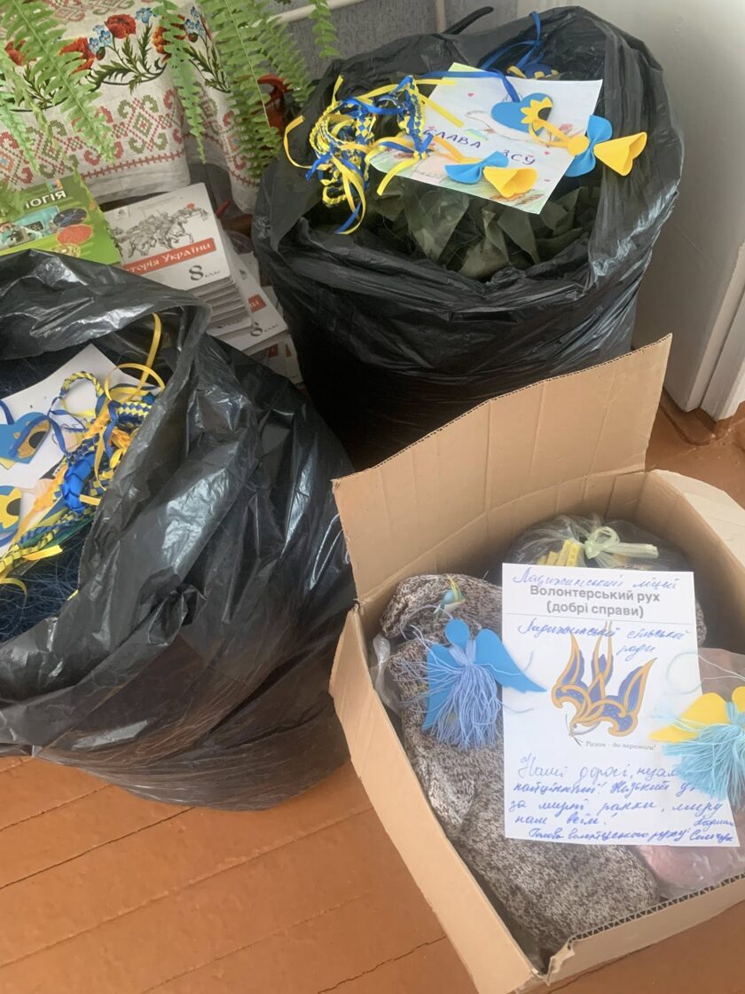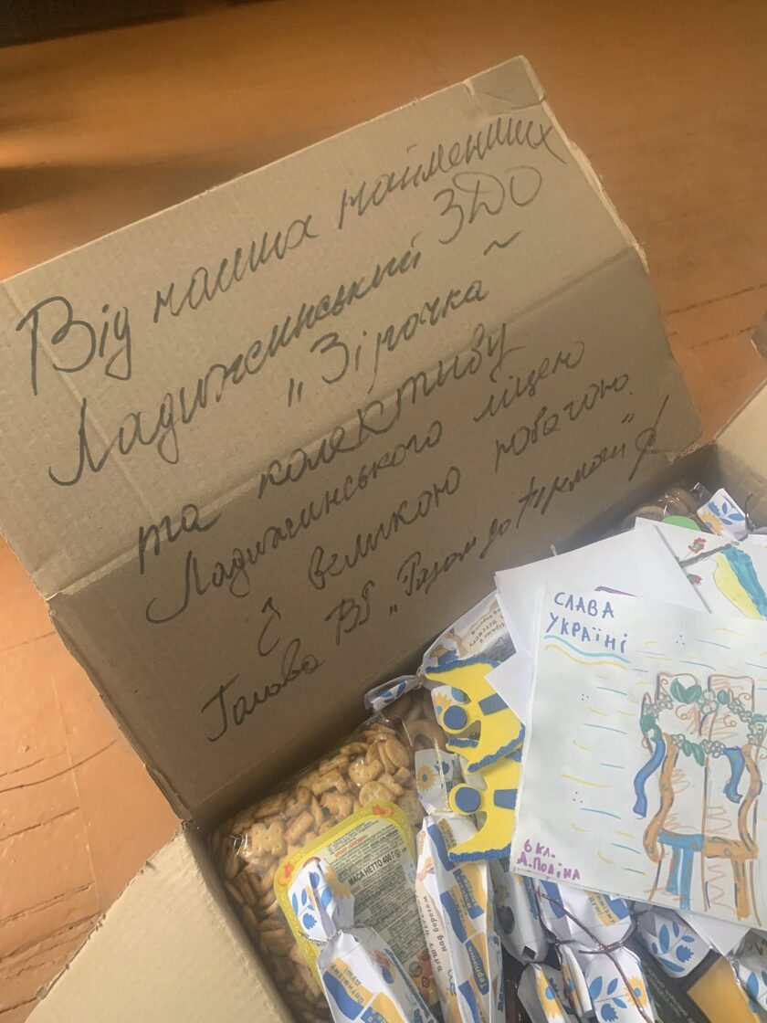 Колектив Ладижинського ліцею та учнівський колектив, зібрали пакунки підтримки для військовослужбовців, малюнки, обереги, листи із закликом: