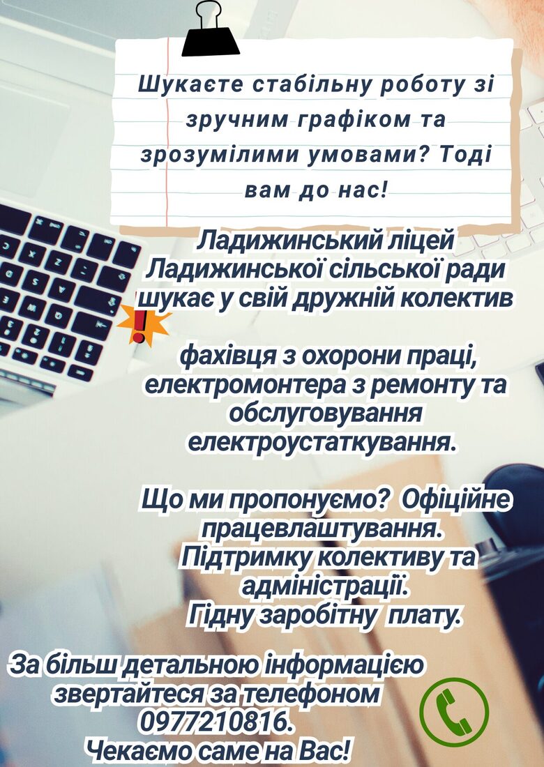 ЕЛЕКТРОМОНТЕР З РЕМОНТУ ТА ОБСЛУГОВУВАННЯ ЕЛЕКТРОУСТАТКУВАННЯ (1 СТАВКА)